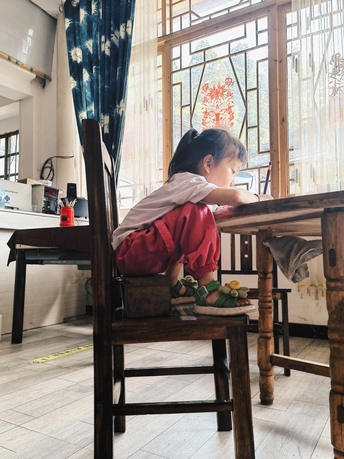 偶遇身高仅有一米的小女孩,垫着一高一低的凳子趴在那里认认真真的写作业,忍不住赶紧抓拍下来!学习要从娃娃抓起[强]