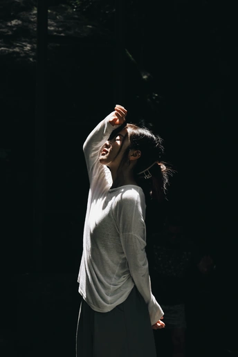 这是在安吉藏龙百瀑的一个瀑布前拍摄的,茂密的竹林把光线遮挡的密不透风,只有在风吹动时才有一丝光线射入,仿佛丁达尔沐浴在脸上