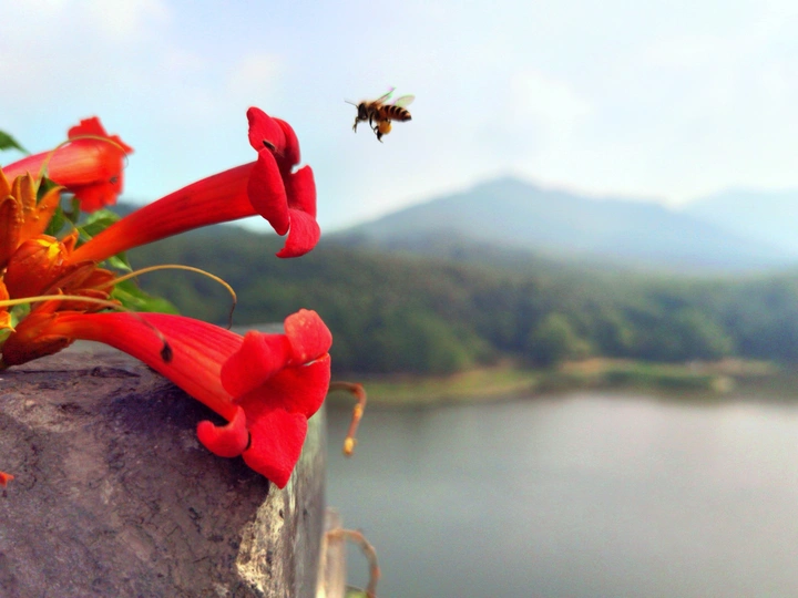 琵琶湖,明城墙,凌霄花,小蜜蜂