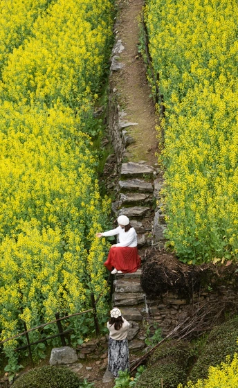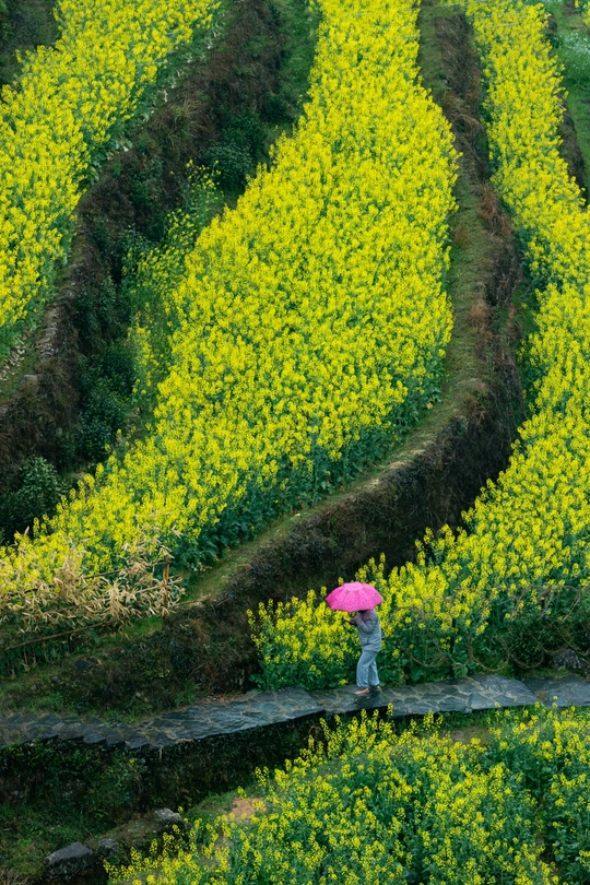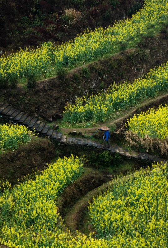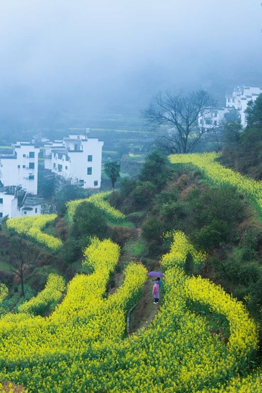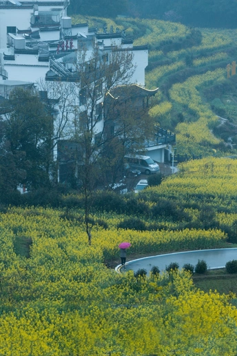 春天属于江岭,江岭属于春天 婺源江岭无疑是整个婺源最出彩的地方,与篁岭不同,江岭的春天触手可及,就在你身边,就在你眼前,你看得到,听得到,亲的到,闻的到。 白墙青瓦下,层林尽染,处处金色,写尽烟雨江南,诗意江南的故事。 这组照片里除了美景,重点都抓住了风景里的人,没有人,画面就失去了重点。 春风十里 不如婺源三日