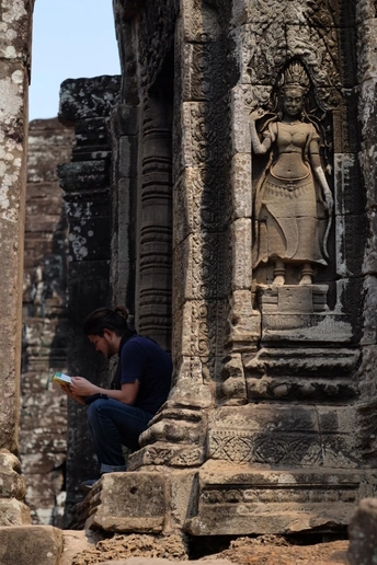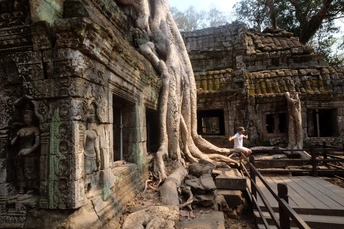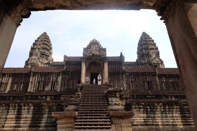吴哥窟是吴哥古迹中保存得最完好的庙宇,是高棉古典建筑艺术的高峰,它结合了高棉寺庙建筑学中祭坛和回廊两个基本的布局,以建筑宏伟与浮雕细致闻名于世。吴哥窟的造型已作为柬埔寨的国家标志成为国旗的图案。[9]