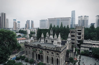✨古德寺取“心性好古,普度以德”之意,并由黎元洪亲自题写匾名。寺庙坐落在市区内,周边为现代高楼,保存着哥特式基督教教堂、罗马式天主教教堂、拜占庭式东正教堂、伊斯兰风格的清真寺风格,作为一座极具特色的寺庙,它和传统寺庙黄瓦红柱、飞檐翘角的大殿迥然不同。有浓郁异域风情的建筑,仿佛置身于欧洲城堡。 ?打卡机位如下包括但不限于: 1️⃣左侧楼二楼走廊尽头的拱形窗,窗外就是以圆通宝殿大殿为背景,极其出片。 2️⃣圆通宝殿回廊 3️⃣广场长椅