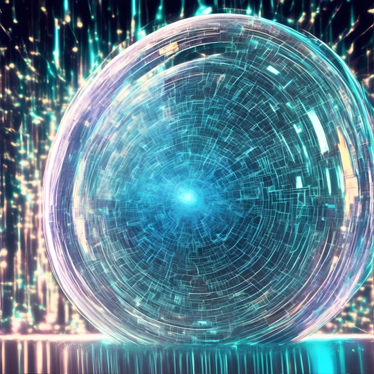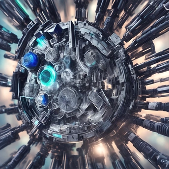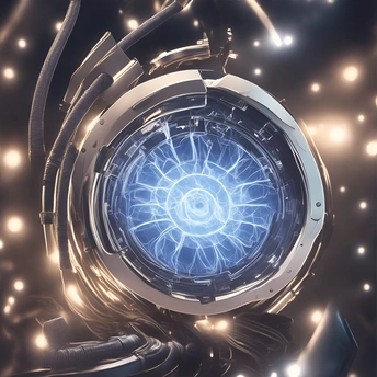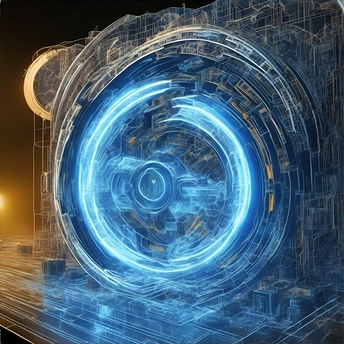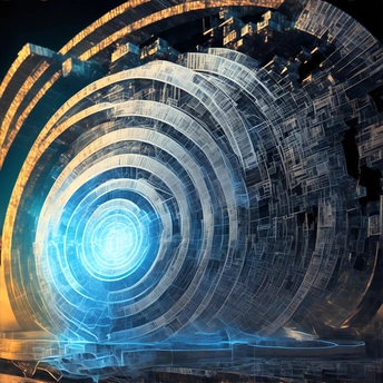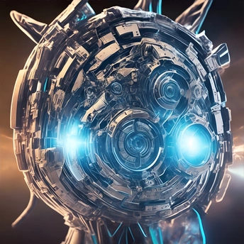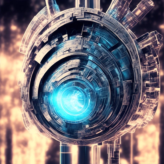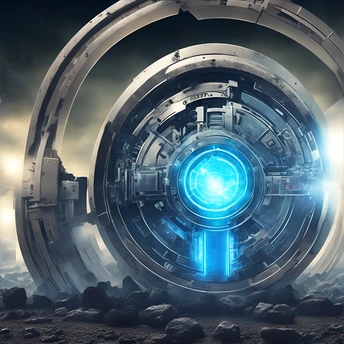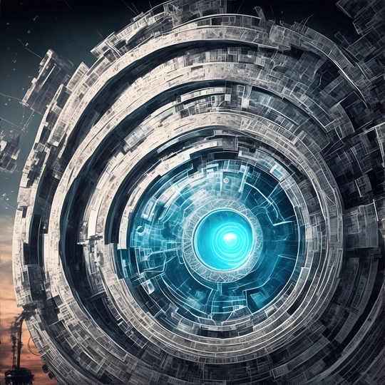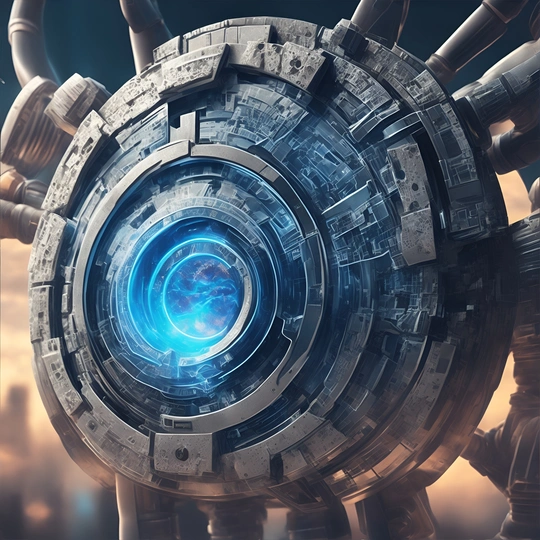 未来宇宙城市之眼,反应堆产生的能量形成一个炫彩的蓝色能量光环,像一个眼睛让人目眩神迷,这个能量光环不仅可以为城市带来能源,还可以为城市带来艺术和科技上的魅力,让人们感受到未来科技的力量和神秘性。