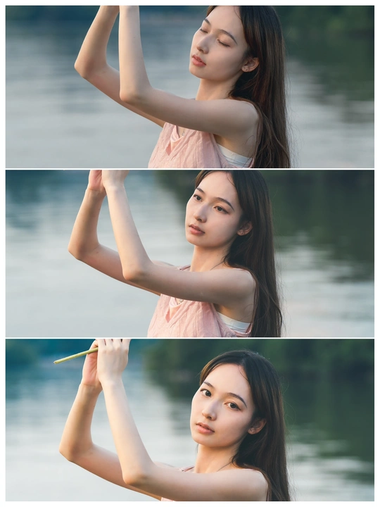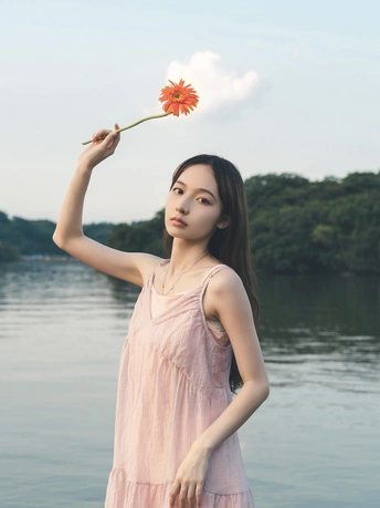 晚风轻轻吹,一组江边人像 一眼很温柔的小姐姐