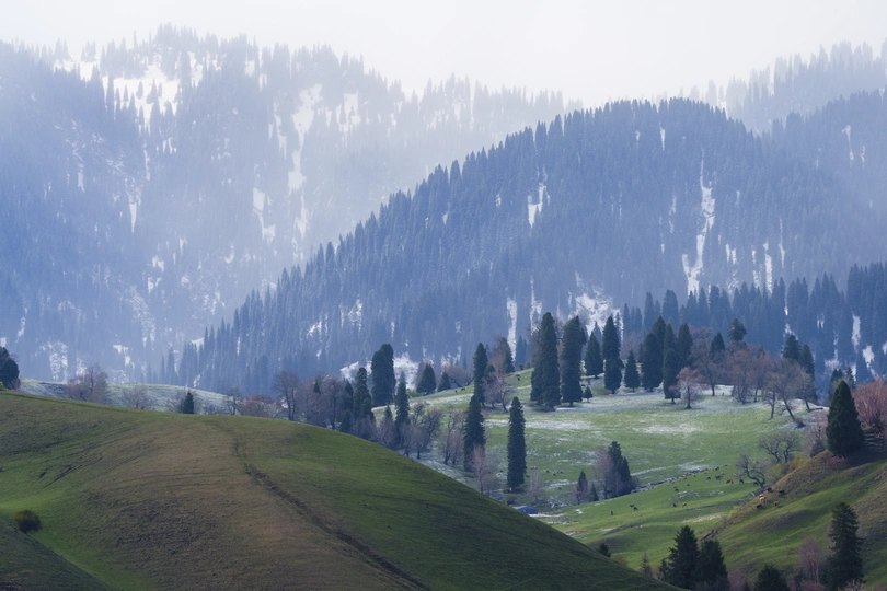 摄于23年5月初的北疆,5月的北疆依然会下雪,山林初绿,飘雪茫茫。