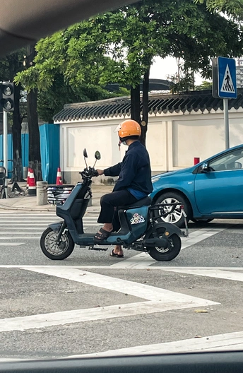 非一线城市的清晨上班,也可以是拖鞋➕小电驴。我想让这个照片看着轻松快乐些。