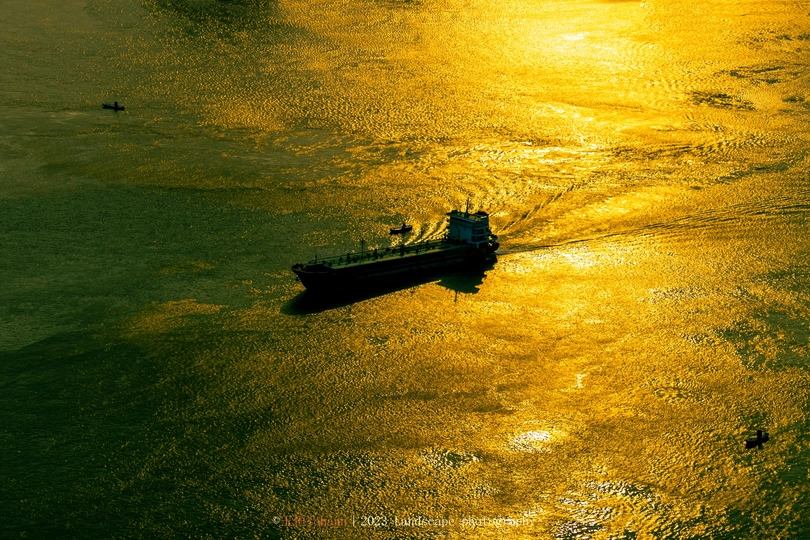 近日,重庆的降雨及涨水导致两江交汇处出现“鸳鸯锅”奇观。在傍晚6点左右,太阳即将落下,太阳的余晖洒落在交汇处,形成墨绿和金色的奇特搭配,一首货轮驶过,散发出一种成熟的安宁与平静感。@米拍活动呆呆兽 @米拍社长 @米拍编少