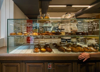 香港中环苏豪区位于香港岛中部,是一个充满活力和文化氛围的地区。这里有许多历史建筑、艺术画廊、时尚精品店、餐厅和咖啡馆,吸引着游客和当地居民。 苏豪区以其独特的街道布局和狭窄的巷道而闻名,这些巷道通常被称为"弄堂"。这些弄堂里有许多小店铺,出售各种商品,从时尚服饰到手工艺品和古董。 当然也少不了美食,客人在面包店里挑选面包。