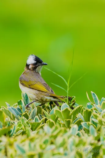 站在树枝上休息的白头鹎特写镜头。摄于成都南湖湿地公园。