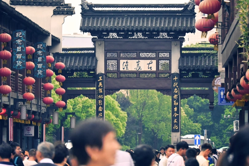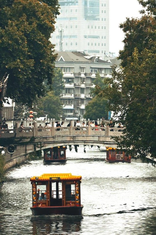 人潮汹涌,重现繁华。 “梨花似雪草如烟,春在秦淮两岸边。”古都南京,秦淮河畔,在夫子庙秦淮风光带的核心区域,贡院街、贡院西街、大石坝街及3个大型商业综合体,组成了南京的地标窗口——夫子庙步行街。@米拍