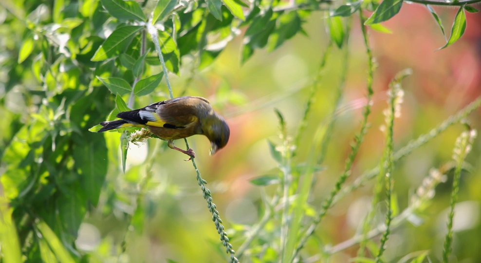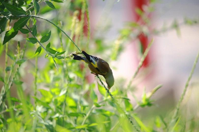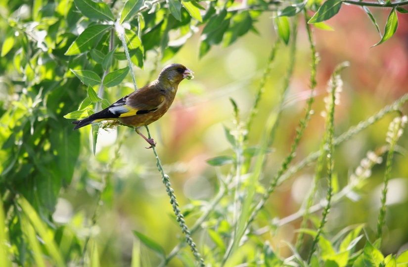 晨光中觅食的金翅雀