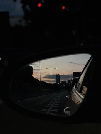 一路上都没注意到后视镜里的风景,刚好搭配两个若隐若现的红灯充满了神秘感@米拍