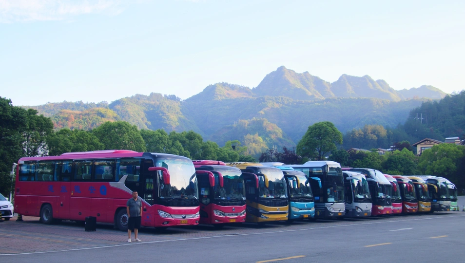 山下的旅游大巴一摄于湖南省张家界景区山下