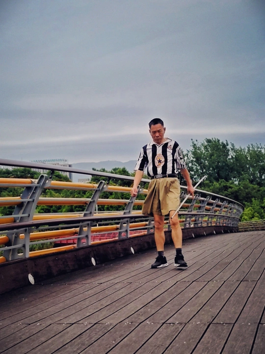 彩虹桥只通行人,没有车辆,是晨练爱好者的的好去处。 近两年我也断断续续去走一走。晨练中有边唱边走的,有一边走一边背诗的,也有退着走的。印象最深的是一对盲人夫妇,晨曦照在他们的脸上,手上各执一支探路的棒子,他们的步速与常人相当,男士紧紧地攥着女士的手,生怕她要走丟似的,也象是她的领跑员一般。他们脸上那坚毅的平静的神情令人难忘。 几个月后在桥上再次遇上时只有男士一人,我忍不住上前跟他聊了起来,他说她跟她的姐妹们跳广场舞了。上个月我又发现他们成双成对快乐的晨练着,又跟他们聊了几句,他说都六十多了,人老了也要注意锻炼身体,省的生病,他还一再说谢谢我,意思可能是我跟他聊个天是尊重他。他们的谦逊,乐观豁达一定能感染到大家。