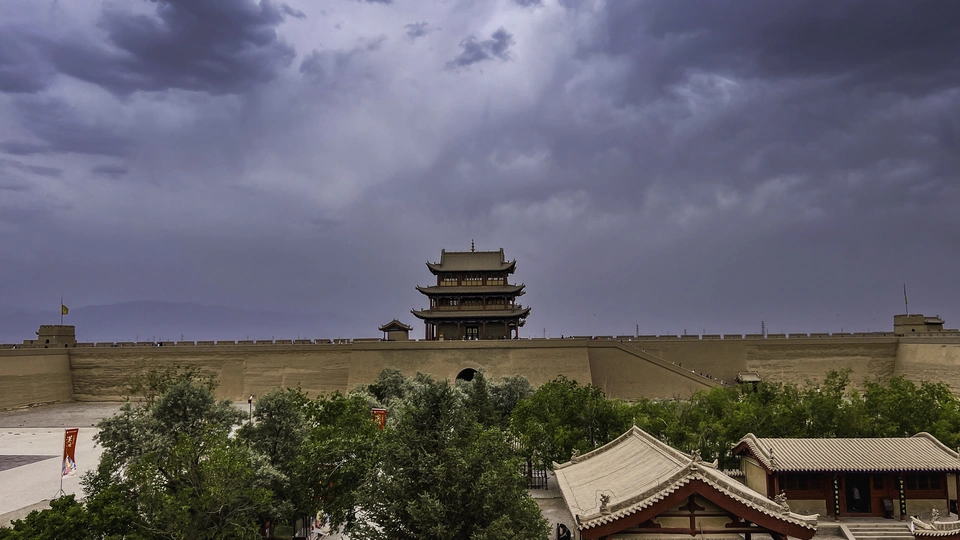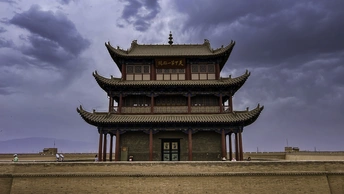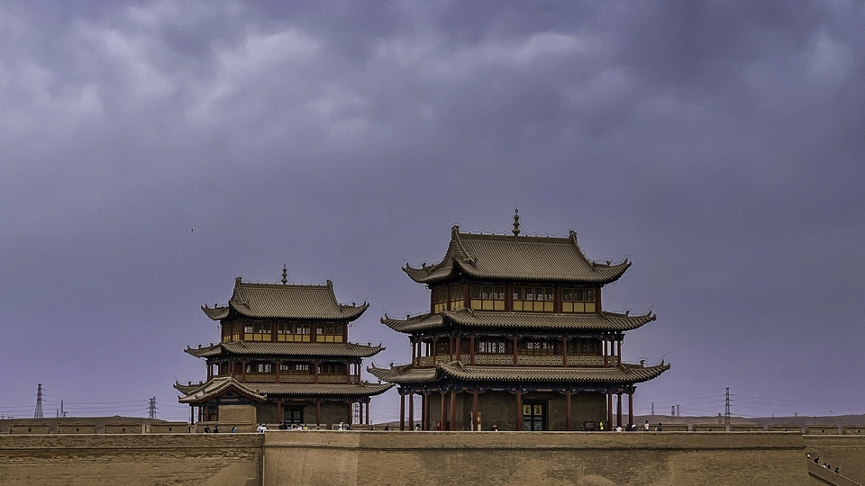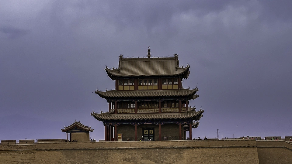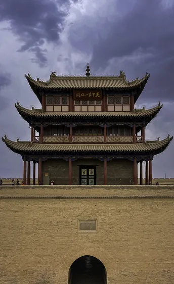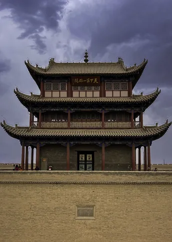 巍然雄关横卧戈壁,两侧城墙与山接连。朱色城楼高耸屹立,映衬着终年皑皑的祁连雪峰。登高俯瞰,长城像巨龙在广袤的瀚海飞舞,须晴日或可见海市蜃楼。城下戈壁滩的驼队传来悠扬的铃声,令人蓦然回想起丝路商队和旅行者。清代林则徐获罪被贬新疆途经雄关,写下“严关百尺界天西,万里征人驻马蹄。飞阁遥连秦树直,瞭垣斜压陇云低。天山巉削摩肩立,瀚海苍茫入望迷。谁道崤函千古险,回看只见一丸泥”的壮美诗篇,今天读来仍荡气回肠,极言此关真乃“天下第一雄关”。雄关犹在,传说在耳。
