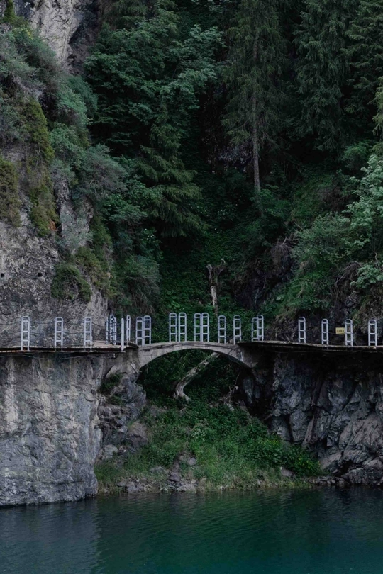看到这座石桥以及他背后的杉林时,突然就想起了那句“绝巘多生怪柏”
