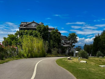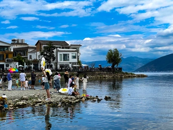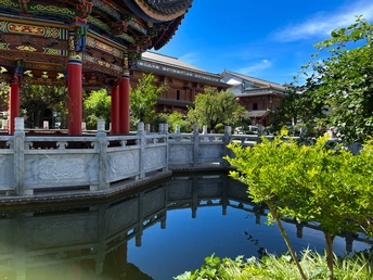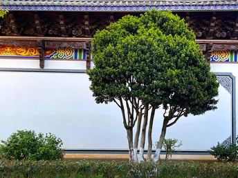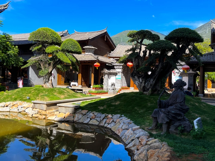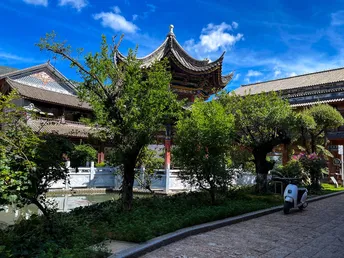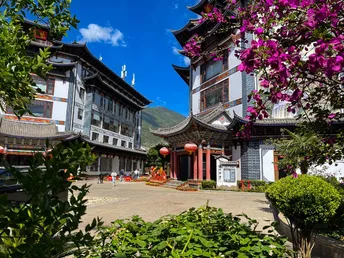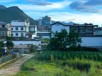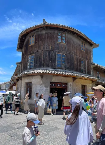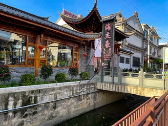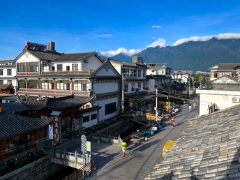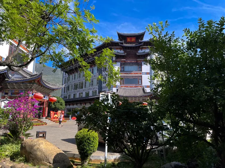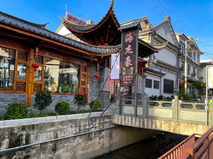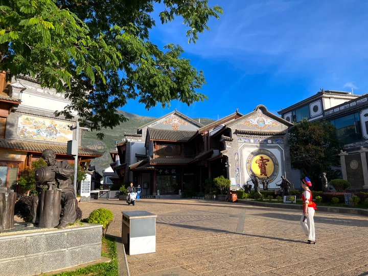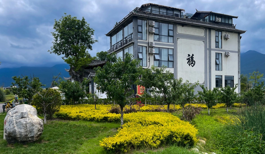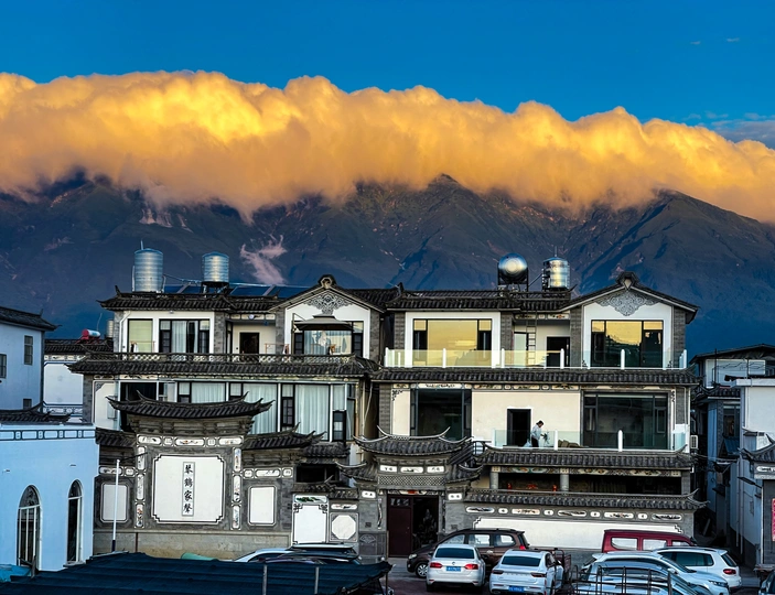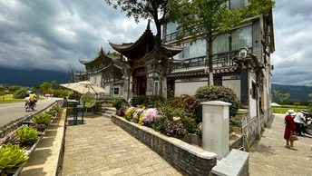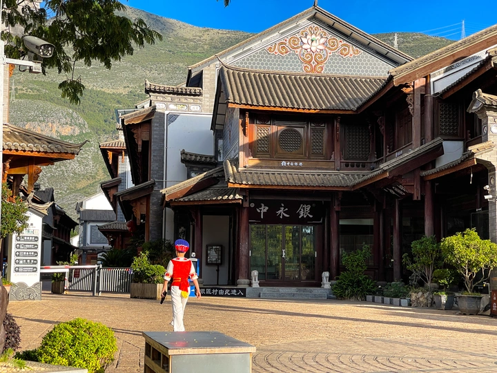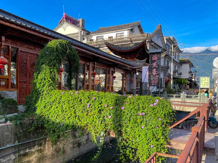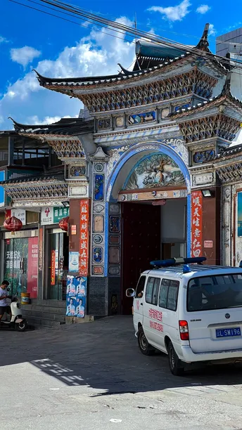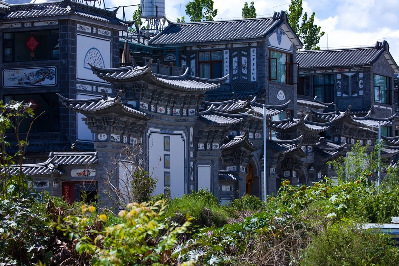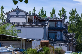 白族建筑的特色是装饰精美,多有门楼照壁。白族建筑大多采用中原殿阁造型,飞檐串角,但多用石灰塑成或砖瓦垒砌。除大门瓦檐裙板和门楣花饰部分用木结构外,余以砖瓦结构为主。白族民居大都就地取材,广泛采用石头为主要建筑材料。 门楼是白族人居所的脸面,因其高大如楼房,故而称之为门楼。大门分为有厦式、无厦式两种。照壁是白族建筑独具一格的建筑结构,不同于传统汉居放置在院落里的照壁,白族建筑的照壁除了有装饰的作用外,还有着围合院落的作用。