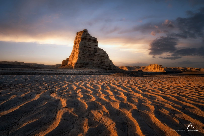 整个大海道地区,地貌都是各种风蚀的痕迹。我们在路边发现了一小片波浪岩,我利用超广角近大远小的透视特性,拍下了这个画面。前景如波浪一般的岩石,远处依然耸立在风中的雅丹山,夕阳照射下,荒凉的大地也多了一份色彩。分别对地面前景和远处的雅丹对焦拍摄了两张,后期做了景深合成。