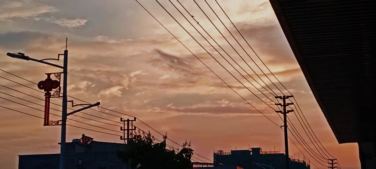(让我看一次见到晚霞,我都很久没有见过了,这天空好壮观,也不错,这天空不错哦)