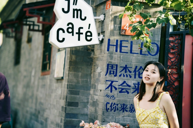 这个夏天总要去北京的胡同里转转 位于北锣鼓巷的 周杰伦主题咖啡厅 刚好那天下午阳光透过葡萄藤 而你 刚好站在光里