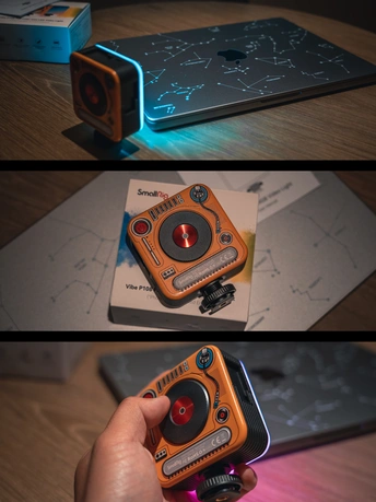 可爱的外观小巧的设计无不将轻量化颜值集于一身,这款斯莫格的圈圈灯内置108颗高显指灯珠,提供高亮聚光和真实显色,95+高显指数,使拍摄被拍摄物体色彩真实还原,减轻后期压力,12Fx全彩灯光效果大大提升了可玩性,可适用于多场景,当你有了想要的色彩,就可以通过单手操作一旋圈灯来轻松调节,非常方便。内置3600mAh电池,可达到130分超长续航,外出旅游不要担心供电问题乡;三个冷靴口适配外界多种灯具,也可用来连接手机。 总之,斯莫格圈圈灯(留声机版) 是一款操作简便、颜值高、实用性强的拍照神器!