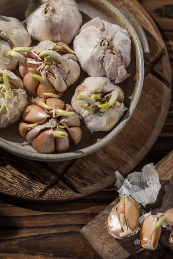炎热的夏天,大蒜作为灭杀病菌利器,同时也存在温润环境下快速发芽的问题,如果仅仅是发芽,没有变质,是可以放心食用的。正常发芽的大蒜不仅无毒无害,而且比没长芽的大蒜更有药用价值和营养价值。如果大蒜发芽伴随变质,杜绝食用。