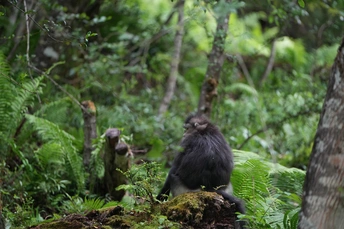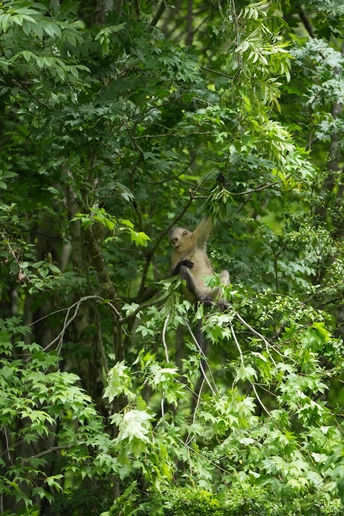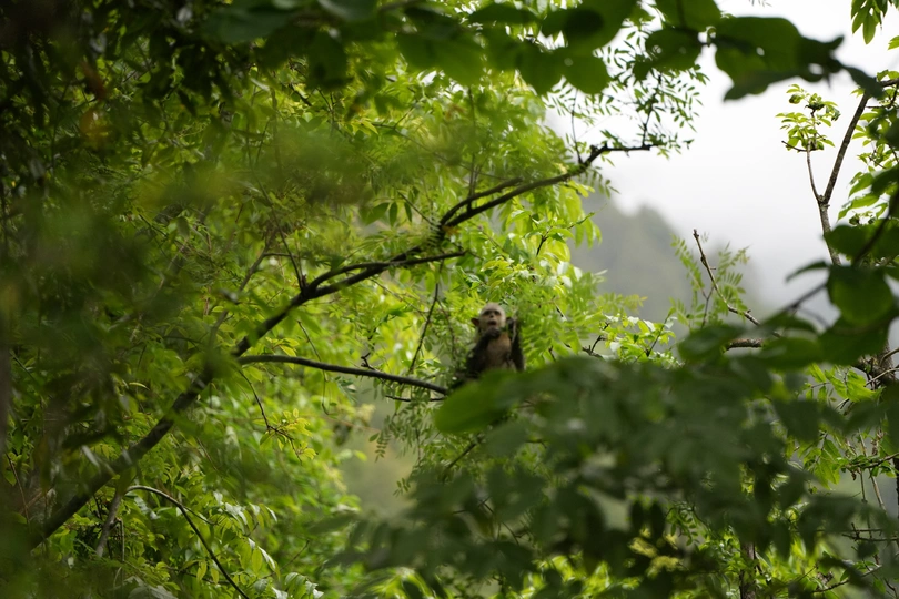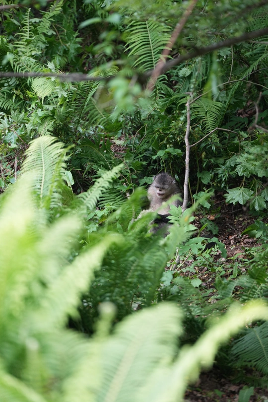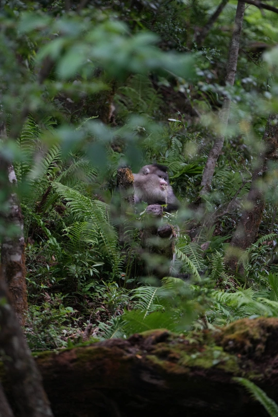 野生滇金丝猴,摄于云南省迪庆州滇金丝猴公园,拍摄到一家族的猴群