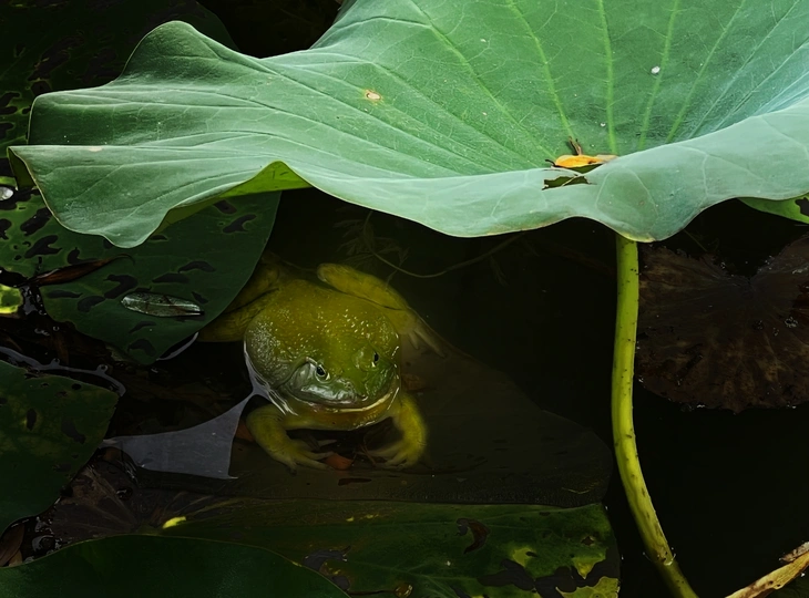 青蛙在荷叶下面乘凉