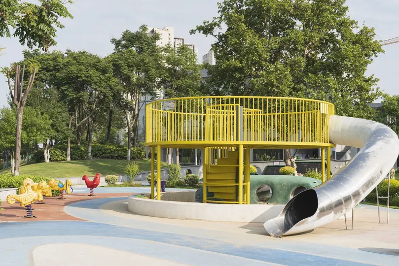 新修的公园,颜色搭配很好看。配上日光就特别好拍!(就是容易被晒化了)