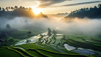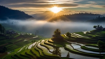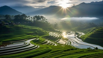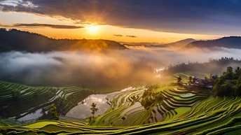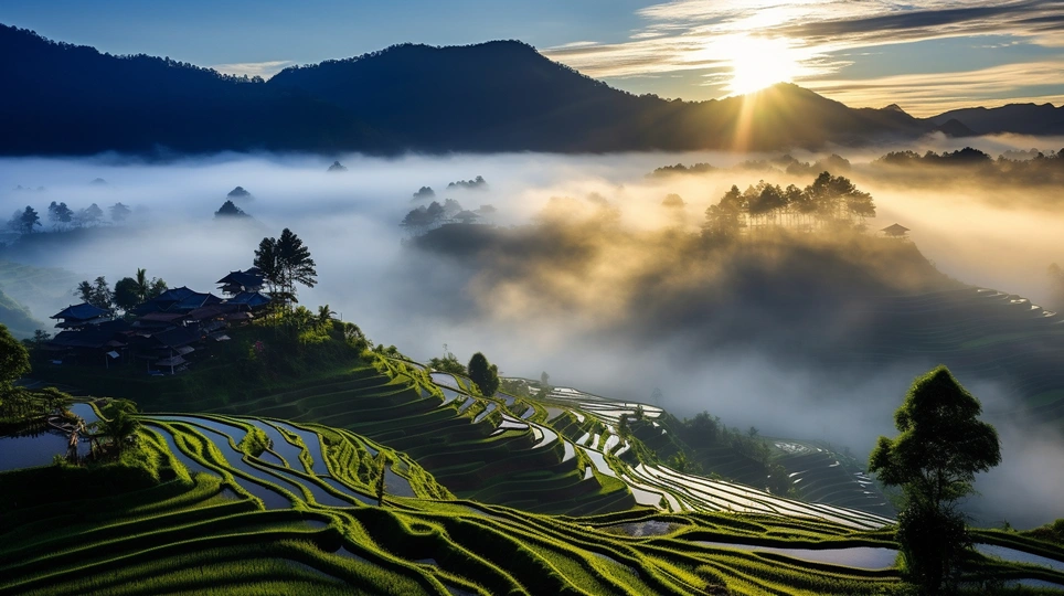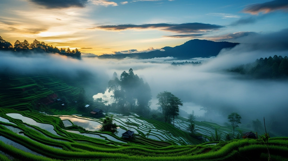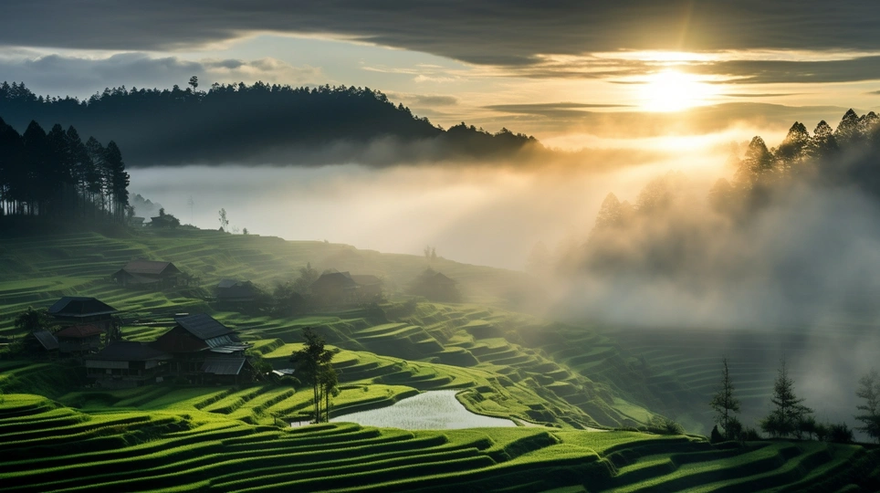 晨曦中的梯田