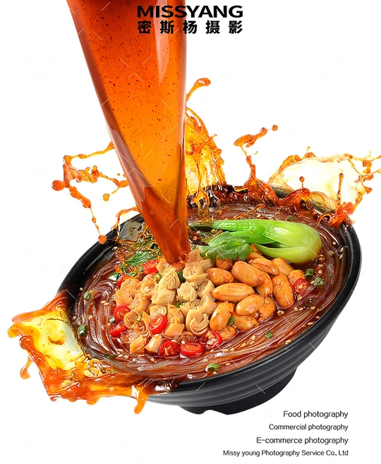 酸辣粉,土豆粉,爆肚小面。烤肠,速食小吃,美食造型,包装类图片拍摄。