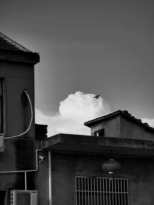 夏日云变化莫测,突有鸟儿一飞冲天……