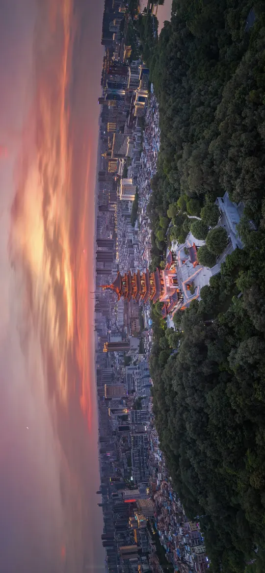 于佛山千灯湖拍摄的一张图,晚霞夕阳月亮与魁星楼共处