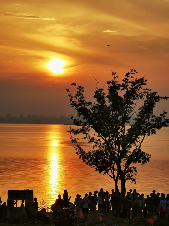 水天一色的金色黄昏,人们都聚集在这块有限观景台上欣赏这最美时刻……