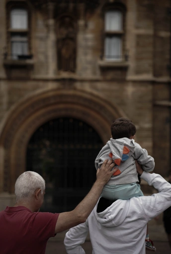 在剑桥抓拍到的图片 小孩子骑在父亲肩上 爷爷扶着孩子的背 也许长大后就真的来到这里了呢