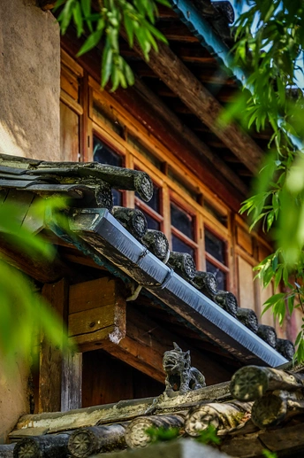 这是以瓦猫为主题的大理古镇风情照片。一只瓦猫栖于房顶,饱经风霜,与古朴的院落风格相得益彰。作为白族建筑中寓意吉祥的重要元素,这只瓦猫静谧地守护着家园,呈现了一幅宁静祥和的画面。