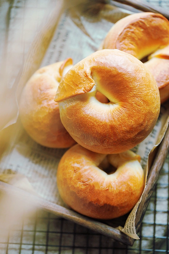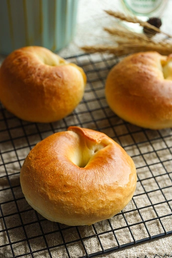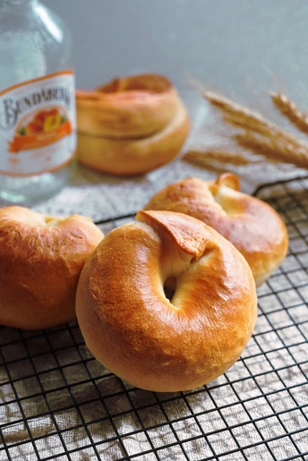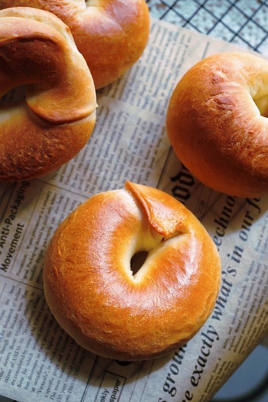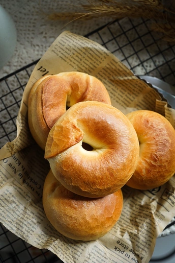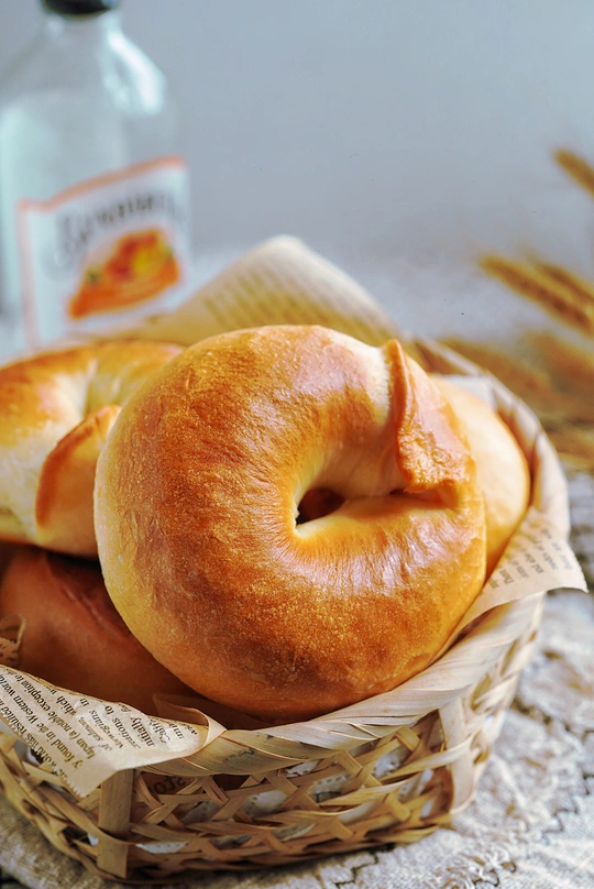 第1次尝试做贝果,还算成功吧,就是收口的地方没有收紧,在烘烤的过程中它有一点裂开,但是我觉得口感还是很不错,外面酥脆,里面有嚼劲儿。 跟着网上学的方法说喷水就能出现钻石纹,很遗憾就只出现了一个,但是也很满足了。 拍照出来这个贝果的颜色也挺好看的,金灿灿的。