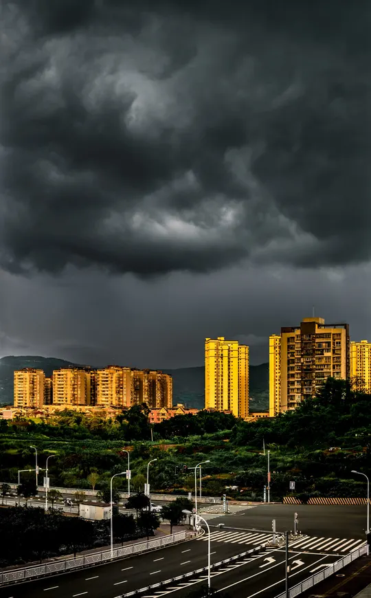 最近的奇怪天气,乌云密布却又有阳光晒下
