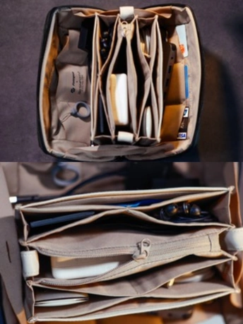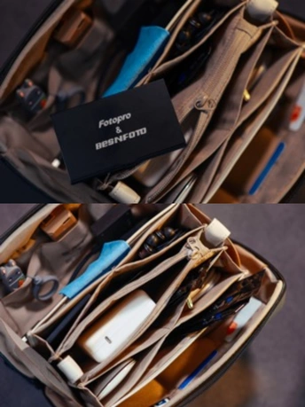 今年各种外出逐渐多了起来,摄影师出门的设备配件零零碎碎一大堆,是一定需要单独的收纳包的 这套富图宝&佰信联名小懒猫收纳包组合我来SHOW一下 收纳包我选的慵懒绿,赠了一个收纳卡盒,TF、SD卡甚至手机取卡针我都会备份带一套 17个独立分隔,X分隔设计可以收纳更多零碎物品,大开口设计取放方便,防水面料YKK拉链,可拆卸的内胆,下面魔术贴,左右是侧吸固定 附赠一根肩带,手抓包也可以作为挎包两种携带模式 仓储设计的很合理,独立的仓位可以精细化收纳摄影师的各种物品,我主要放置四类: 1 笔记本电脑配件:苹果笔记本电源、电源线、尤达大师扩展坞、苹果鼠标、闪迪U盘、有线耳机 2 证卡:身份证、银行卡等 3 数码配件:XQD卡读卡器、CFB卡读卡器、绿巨能FW50直充电池 4清洁用品:VSGO微高的传感器清洁棒、棉签、光学湿巾、相机清洁布和清洁软布 白色洗漱包我是作为独立使用,牙齿不好出门我都是带的脱敏牙膏,男人的剃须刀,夏天的防晒,洗面奶和大宝,感觉已经足够低配了,刚好装下 白色洗漱包也可以作为收纳包的内胆替换使用 最后两个小愿望: 希望每次出行都不迷路 希望每次出行都不忘带卡和电池