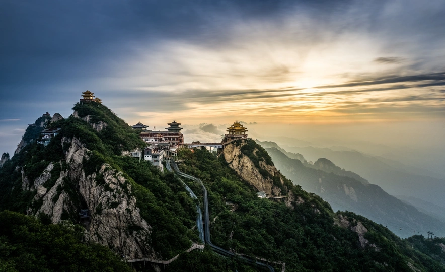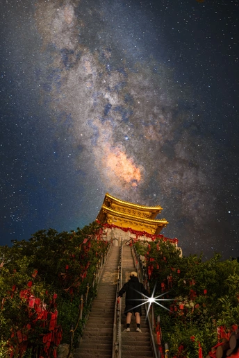 爬山时乌云密布,可视范围很小,结果登上山顶豁然开朗,遇到了老君山上的绝美日落和星空。