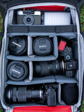好物推荐|他们问我出门4机8镜要背什么包 就算现在的摄影设备越来越小 但是对于我这种“全都要”选手 出门既想拍照拍延时 又想视频无人机 既想超广拍大片 又想长焦打细节 还要定焦拍人像 那么 一个超级能装的摄影背包 是必不可少的 最近入手一款BESNFOTO双肩包 看中的就是其超大的容量 而且可以根据拍摄需求 个性化储物的结构 ✅图4装下了4机8镜 依次是 索尼RX1 奥巴pen 奥巴8-25pro 索尼851.8 奥巴75-300 索尼A73+腾龙28200 奥巴em13+40-150pro 奥巴60微 覆盖16-600焦段 有超广有超长焦 有微距头 有定焦人像头 ✅已经够惊人了吧 一次出门 焦段带齐 实际上顶部还有一块可以扩充容量的部分 我觉得再加上我的Mavic2 pro轻轻松松 背板部分还可以装下笔记本电脑 出门旅行修图也不在话下 ⁉有人会问没办法装下脚架 不好意思 这个包配了超多的绑带 左右侧以及背侧都可以自由组合捆绑脚架 如果平时不带这么多镜头 还可以拆掉背板中的隔板 直接把脚架放入背包(爬楼党都懂得) ✅另外我一般三机出门 免去了来回换镜头的烦恼 但是一个机器用肩带挂脖子上