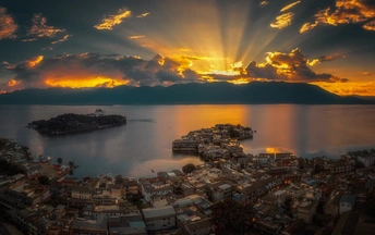 都说大理是中国最容易看到晚霞的地方,此行我数次看到了如此壮丽的晚霞,伸入洱海的玉矶岛和南诏风情岛被霞光所包围。