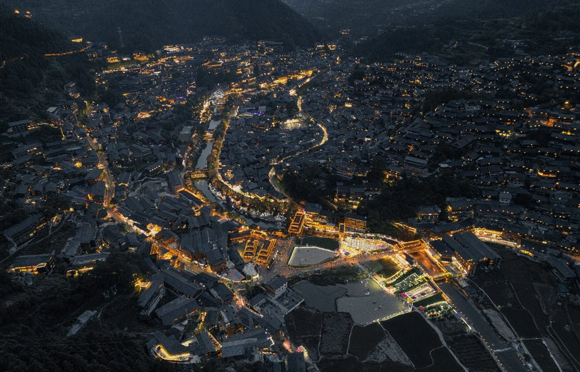 千户苗寨嘛,夜景确实好看,夜景嘛,当然选黑金风格咯。