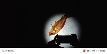 在798艺术区对装置艺术的再创作。金鱼是时代的隐喻,聚光灯代表着注意力,电影画幅的使用意味着多重记录。小米13u拍摄。