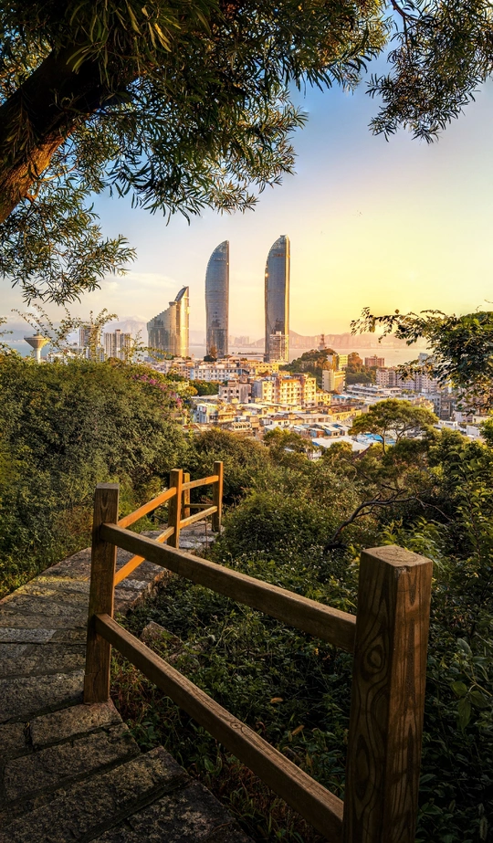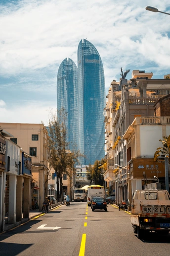 厦门双子塔本名厦门世茂海峡大厦,位于厦门市思明区演武西路,厦门世茂海峡大厦占地面积约为3万平方米,地上建筑面积27万平方米,总建筑面积约为33万平方米 ;其中A塔64层,底部商业部分层高5.0-6.0米,上部SOHO办公楼标准层典型层高3.5米、3.6米,屋面高度249.9米;B塔55层,底部商业部分层高5.0-6.0米,上部酒店和写字楼标准层典型层高4.2米,屋面高度249.9米;裙房共6层,屋面高度32.5米;地下室3层,埋深约16.3米;A塔、B塔屋顶以上均设置钢构架,构架顶标高均为300米,裙房与塔楼地面以上设缝分开