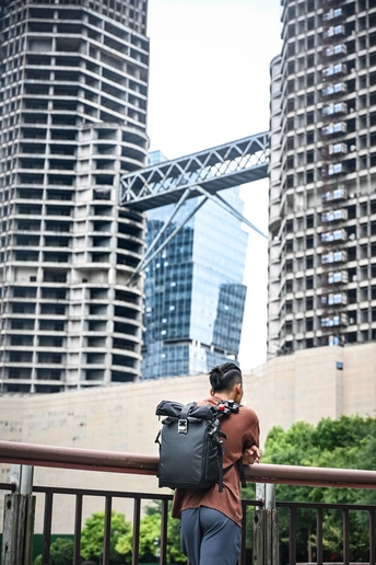 来浙江,绍兴文化创意园-打卡。 三栋塔楼为山,高低错落,此起彼伏,铺装为水,映衬高山:裙楼架空两层,和塔楼串联咬合,设计融合了“山水之城”。我选择的是佰信BN2020S小号相机包,防泼水面料减压肩带加宽设计,加大受力面积。卷头延伸设计扩容后的标称容量为19L别看小号的双肩包,却超能装!可放一机三镜+衣服和配件。这是一款能满足我所有需求的摄影包,日常逛街,旅行,上班,随时可以使用的摄影包