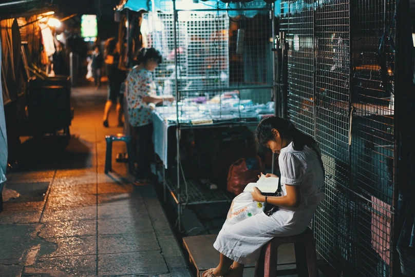 泰国旅行途中拍摄的一些人和物,有酒吧吧台的酒保,有船上售票的小哥,有天桥下卖水果的小贩,有夜市里独自看书的小女孩