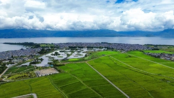 洱海,古称昆明池、洱河、叶榆泽等。位于云南省大理白族自治州大理市。一般湖水面积约246平方千米(一说252平方公里[41]),蓄水量约29.5亿立方米,呈狭长形,北起洱源县南端,南止大理市下关,南北长40公里,是仅次于滇池的云南第二大湖。洱海形成于冰河时代末期,其成因主要是沉降侵蚀,属高原构造断陷湖泊,海拔1972米。洱海,属澜沧江流域,系其支流漾濞江支流西洱河上源。湖水由西洱河流经大理市区下关,向西汇入漾濞江。洱海具有供水、农灌、发电、调节气候、渔业、航运、旅游七大主要功能,洱海西面有点苍山横列如屏,东面有玉案山环绕衬托,空间环境优美。[1]1981年经云南省人民政府批准建立苍山洱海自然保护区,1994年晋升为国家级,主要保护对象为高原淡水湖泊及水生动植物、南北动植物过渡带自然景观、冰川遗迹,面积79700公顷。