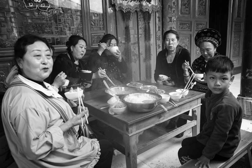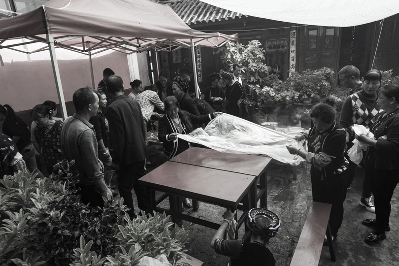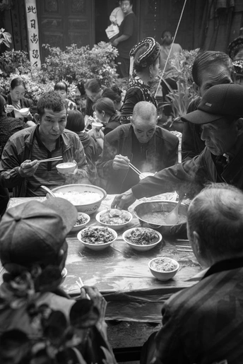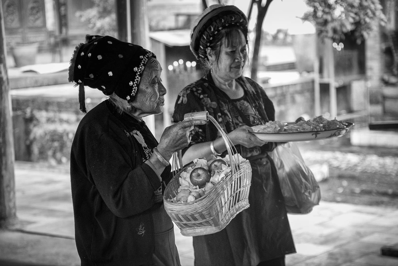 在金色阳光的照耀和微风的轻拂下,空气中弥漫着温暖与宁静。我选择深入民生,去感受那充满纯朴氛围的周城。 周城的建筑充满着独特的特色,展现出白族文化的独特魅力。随处可见典型的“三房一照壁”和“四合五天井”封闭式庭院,构成了恬静的村落风景。路过的白族村民们身着传统服饰,仿佛将时间倒流,为整个场景增添了异域风情。然而,即便有这些外界的喧嚣,村民们对于前来的游客仍然怀着宁静和勤劳,这份祥和让人难以忘怀。 走进更深处,你会沉浸在宁静祥和的生活氛围中,仿佛置身于另一个世界。在龙泉寺,两位白族婆婆虔诚地祈祷,与我分享了食物,这一刻让我感受到无限的温暖。突然间,一阵热闹的讨论声传入耳中,我赶了过去,原来是遇到了白族人民的祭祀活动。在这个特殊的时刻,村民们欢聚一堂,有的谈论家常,有的涉及琴棋书画,每个人脸上都洋溢着幸福的微笑……每一次走近餐桌,都会受到他们真诚的邀请,与他们一同共进午餐。白族人民的善良和纯朴在这一刻深深地触动了我。 这次深入之旅,让我更加真切地感受到大理周城的宁静纯朴。在这片远离喧嚣的土地上,时间似乎变得缓慢而温柔,每个瞬间都充满着珍贵的情感。