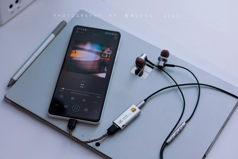对于沉迷于音乐的人来说,单纯的“听个响”一定是不能满足的,音乐的细节才是至关重要的,可以说是整首音乐的灵魂。无论是乐声还是人声,更多的细节,更加细腻的音质,才能传达演奏者的情绪和情感,才容易引起共鸣。 出门在外,便携最重要,如今手机作为比钱包还必须的物品,不知不觉也已经成了音乐爱好者的替代品。不过现在各大手机厂家都在疯狂地卷影像技术, 对于音频硬件反而不是特别看重,当然也或许是受手机内部结构或者外观体积影响,即使是各品牌旗舰手机平板,功率推力也相对较小,遇到稍微阻抗高一些的专业耳机,都不能完美的驱动,导致失真,可以说是小马拉大车,体验非常差。 小尾巴解码耳放完美解决这一问题,这次体验的这款山灵UA1 Plus,给了我大大的惊喜,对于追求高质量音乐的用户来说,既能保证便携,又能更好的享受音乐,完美解决手机推力不足的问题。 山灵UA1 Plus采用全金属的机身,整机可谓十分的小巧,仅有9.5g的轻盈重量,挂在手机上也不会有任何的坠感。 精工品质的外壳,在观感和手感上都十分舒服,单一的多功能按键,不同点击切换不同功能,简洁高效。一边是Type-C的接口,加上赠送的高纯度无氧铜线,以及多功能转接口,即可以用在手机上
